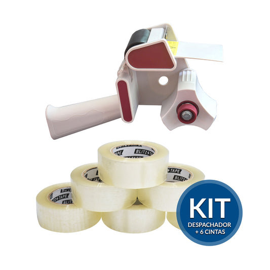 Kit Despachador de Cinta Adhesivo Plástico + 6 Cintas de 48mmx150m