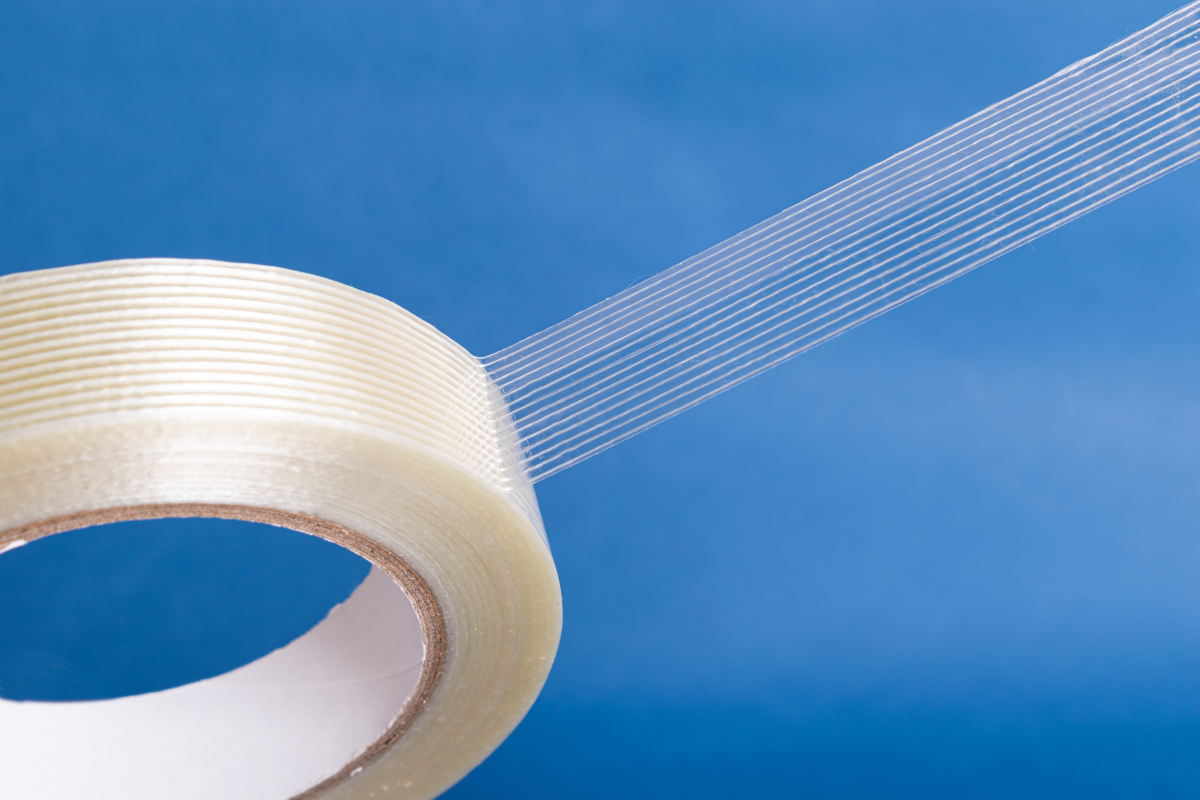 Nuestra cinta con filamento es fabricada con película PET y se encuentra reforzada con fibra de vidrio, lo cual logra una excelente resistencia a la tensión y al corte.